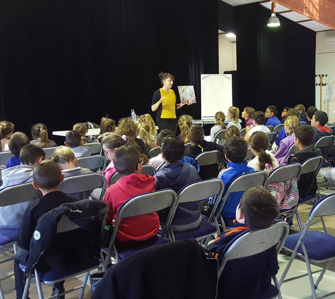En plus de ma pratique de l'illustration, j'aime rencontrer les jeunes lecteurs pour présenter mon métier, parler de la chaine du livre ou de la pratique du dessin. Ces rencontres peuvent être des présentations publiques ou scolaires, ou la mise en pratique d'ateliers de dessin et d'illustration. Habituée à rencontrer des lecteurs de tous les âges, en France ou à l'étranger, je suis intarissable lorsqu'il s'agit de partager ma passion des histoires dessinées !