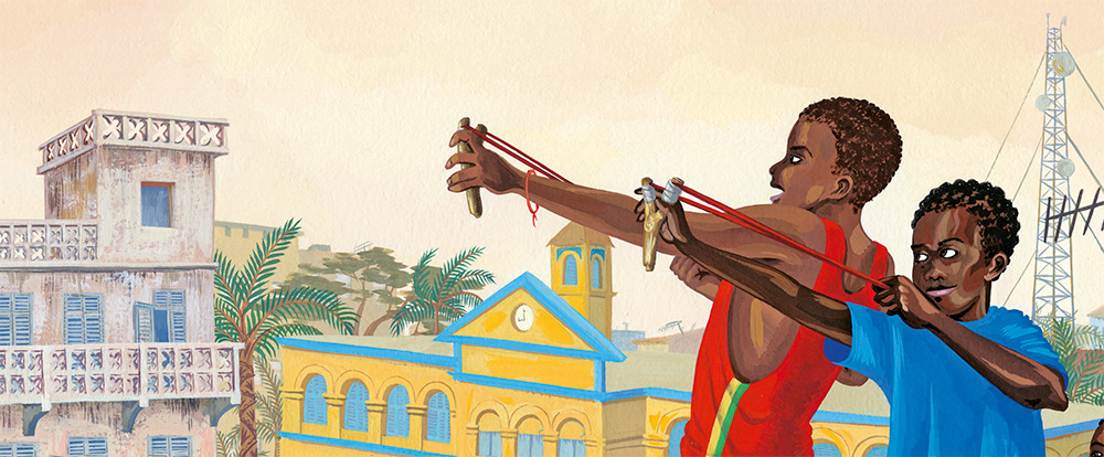 Issues de l'album Le lance-pierres de Porto-Novo écrit par Florent Couao-Zotti, aux éditions Sarbacane (2017) :